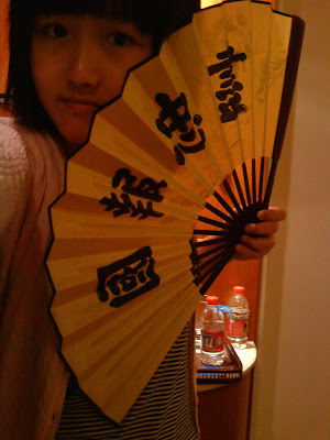 Jiawan bought this stupid paper fan for don't know why. Never mind, it's pretty photogenic actually. haha ;D